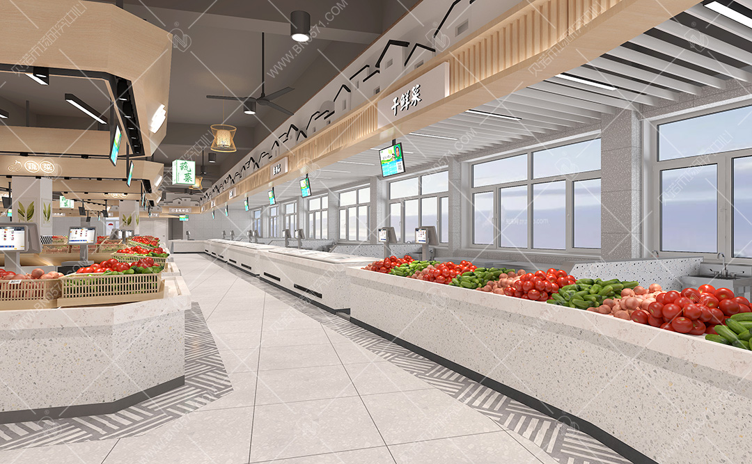 ·其中肉类采用专用灯光,水产区的摊位做法重新设计,干货区注重陈列设计。